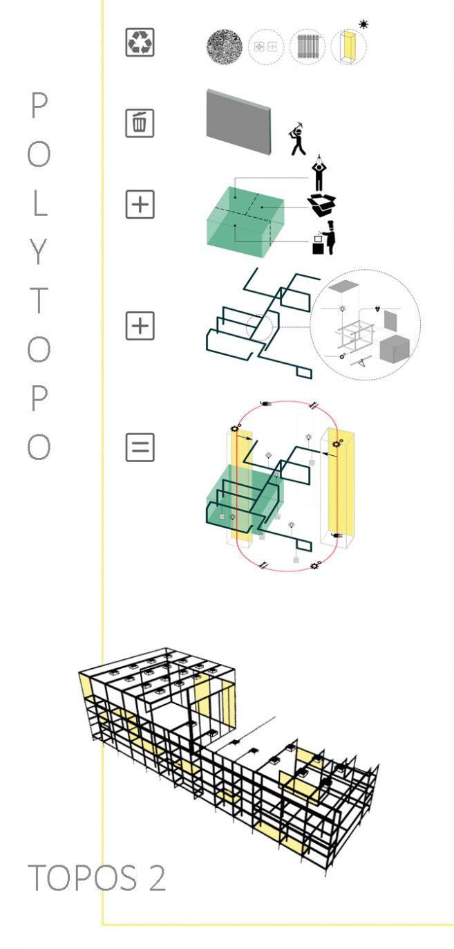 Topos 2 is a project designed by z-level architecture for Modernaria in Florence, a shop and workspace for restored 60’s pieces. Based on Polytopo construction system, implemented admirably by local craftsmen.