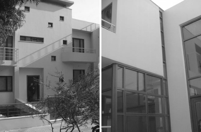 Two–storey single family residence located on a short pedestrian way in a southern suburb of Athens, where it constitutes part of the small–scale building of the area