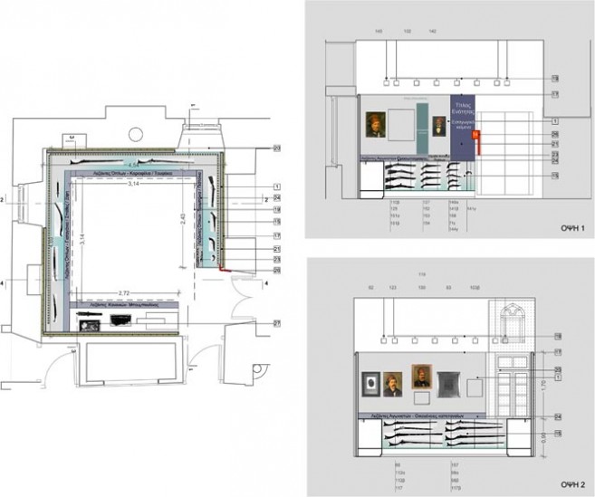 This concerns its exhibits and the history of the island of Spetses. Our intention was to provide various levels of information for the museum’s permanent collection, with visual interest and information organisation. Visitors can be immediately recognise these levels at a glance, as they are located in a specific position in each room and are similar in size and colour. In this manner visitors can choose the level of information they receive, as well as the length of their visit, deciding whether to follow all these levels or only some.